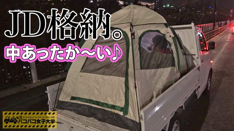 【歴代最大!Hカップ超乳JD】「私、胸が大きいんですよ♪」中2で実ったHカップ!⇒夜のお仕事で出会ったおじ様に開発されまくる⇒たまにはカチカチのおち○ちんで突かれたいと悩む⇒巨乳大好き弊社仕込みのおっぱい星人を召喚!⇒自慢のまんまる柔乳を揉みくちゃにされても笑って許してくれる女神対応!⇒ピストンの度に「激しくすると声が出ちゃう~」って大学の目の前でもお構いなしにイクイク大絶叫の巻!:私立パコパコ女子大学 女子大生とトラックテントで即ハメ旅 Report.043