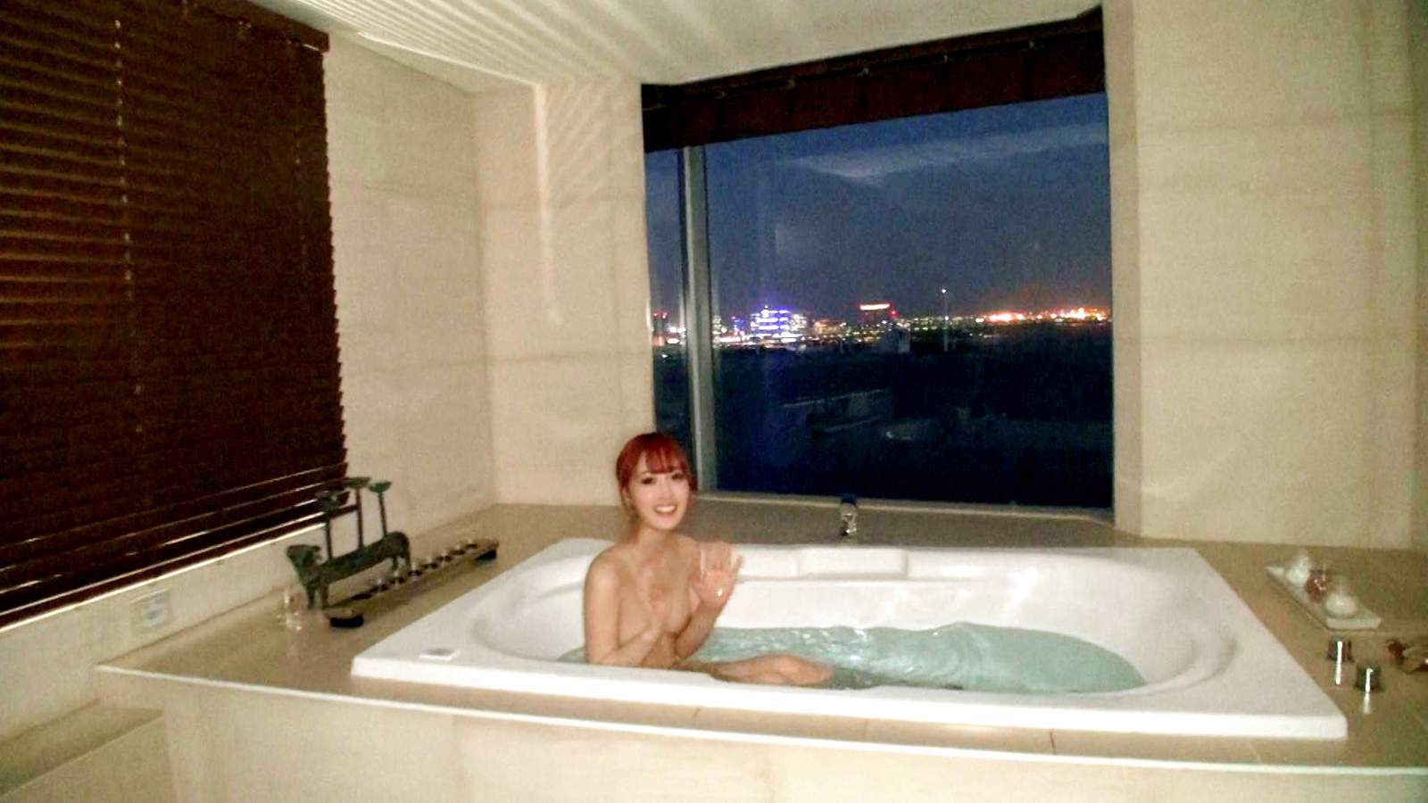 大川藍(23)の乳首が見えちゃいそうな水着脱ぎショット。