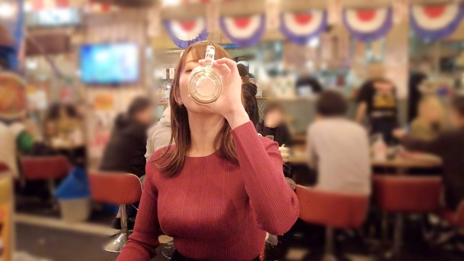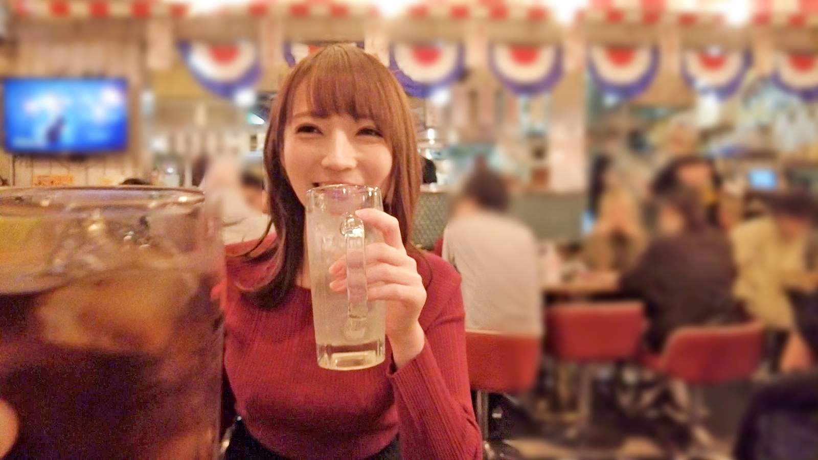 【酒とSEXでとろける上品顔】巨乳丸出しのぴったりニットで大ジョッキゴクゴク!!からの赤ら顔で「いっぱい出して♪」が最高過ぎる!!すんごい美女がすんごいエロけりゃそりゃ何度でもチ●コは蘇る!!つるつるプリプリの艶肌使いホーダイ!!【VlogDiary #017】