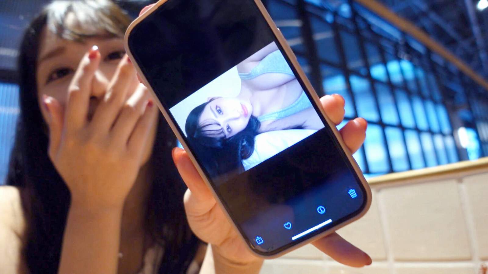 大川藍(23)の乳首が見えちゃいそうな水着脱ぎショット。