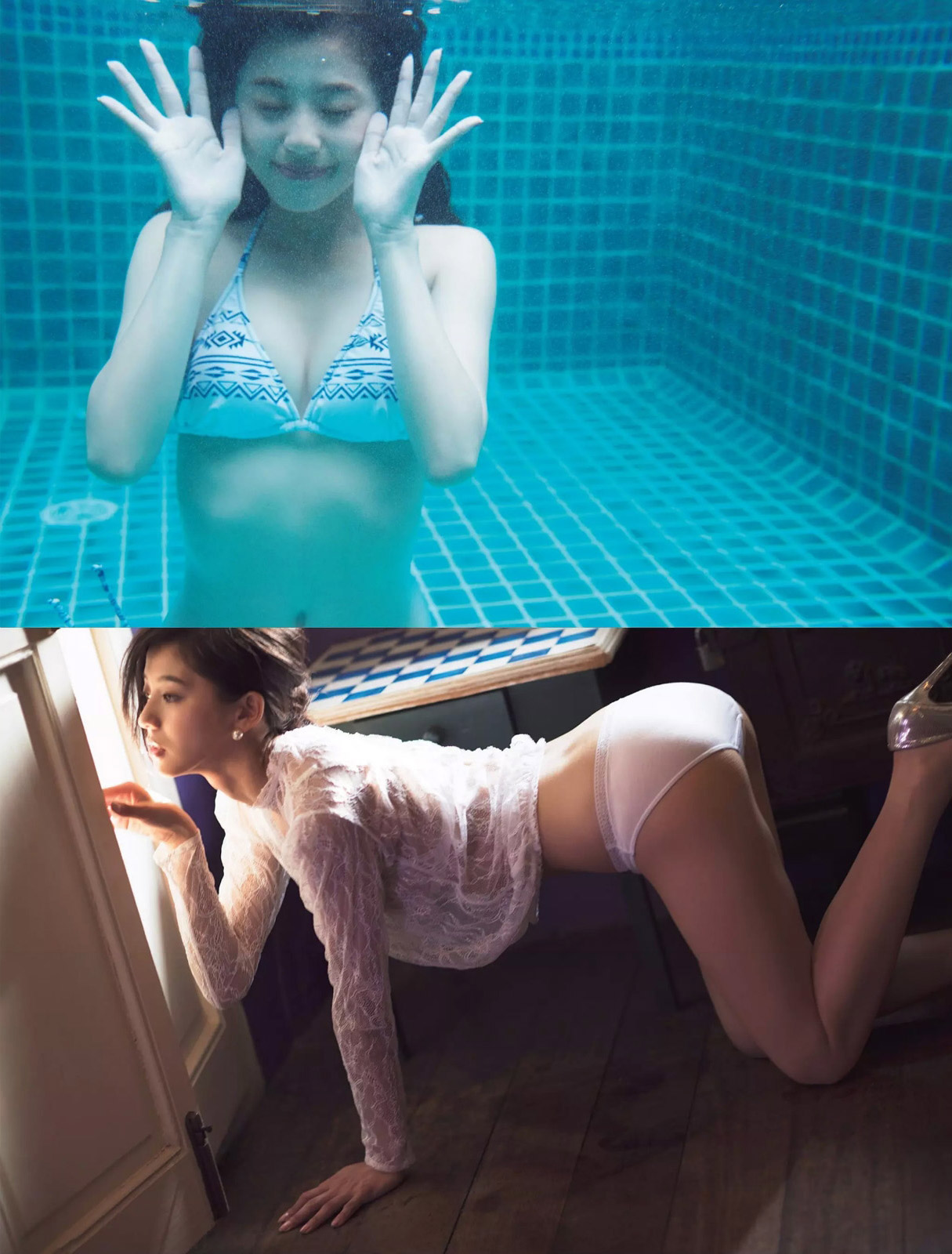 新作写真集から先行公開された青いドレスとバンドゥ風ビキニを追加