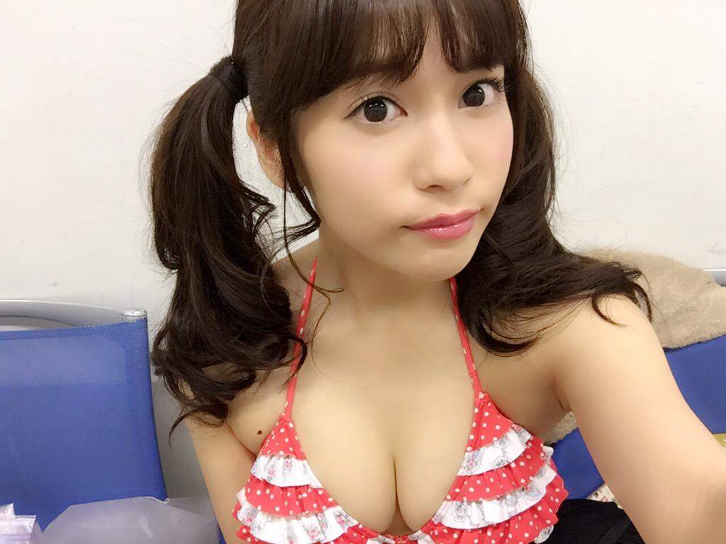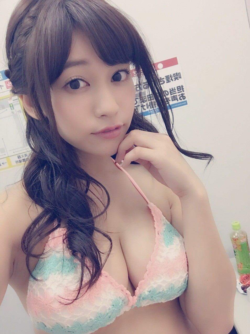 大川藍(23)の乳首が見えちゃいそうな水着脱ぎショット。