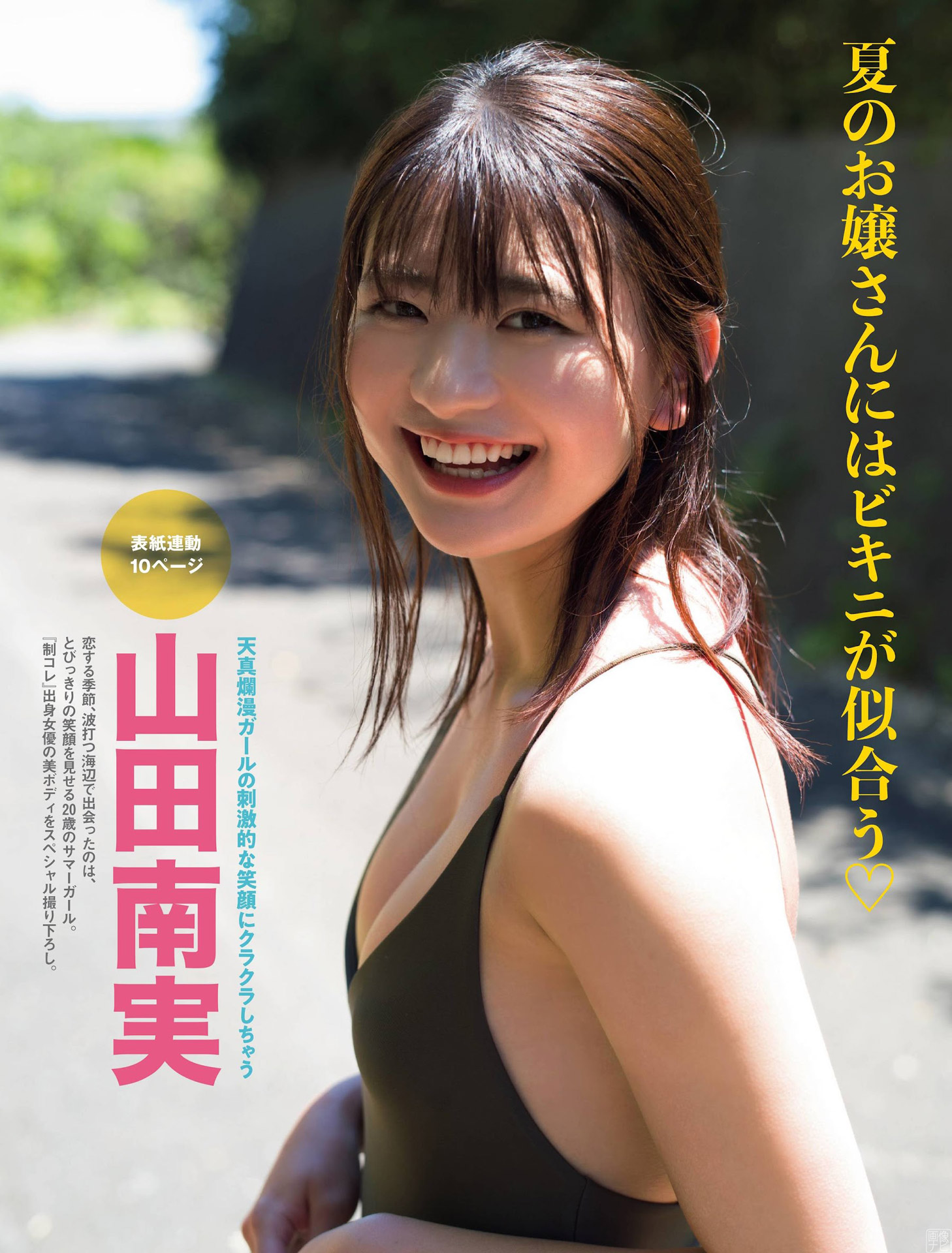 清純派女優の王道を行く山田南実のフレッシュな笑顔。シルキーで滑らかな素肌も光っています